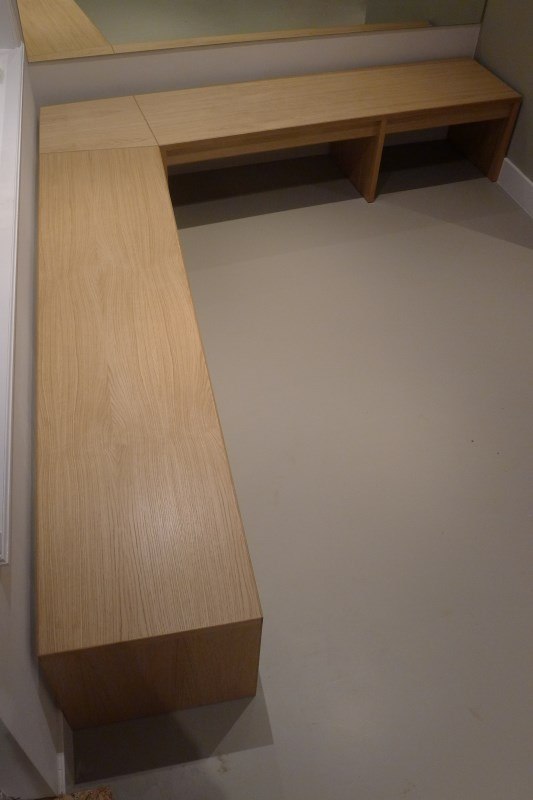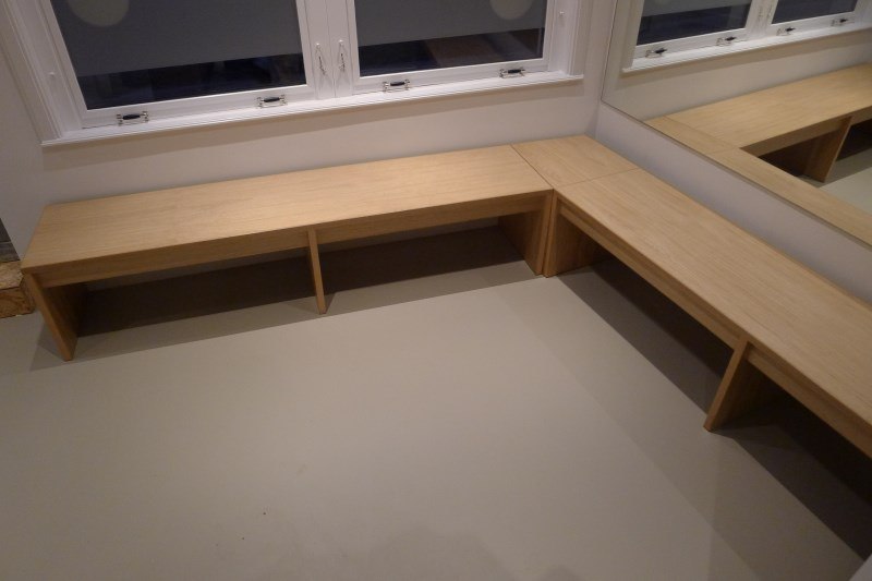 bankjes kleedruimte yoga-studio Materiaal: massief eiken, eikenfineer Ontwerp: Carl Ekman Uitvoering: Sidney Haijtema Bijzonderheden: Deze bankjes staan in een scheve hoek, het hoekstuk heeft daarom een ruitvorm. Meer Diversentv-meubelenbankjes kleedruimte yoga-studiotafelsinteractieve zuilen voor Mediamatictraptredenbedachterwandwachtkamer gezondheidscentrumbergmeubelbriefopenersspeelkuilhoogslaper met bureautjetrappenhuis bekleed met bamboeluidsprekerkastenkistjesTuinbankje en gevelbankjeradiatorombouwenbadkamermeubelsbamboe bed