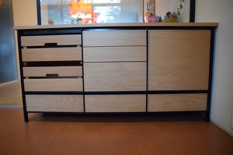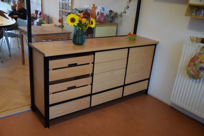 Materiaal: massief beukenhout, beuken multiplex, gepoedercoat staal
