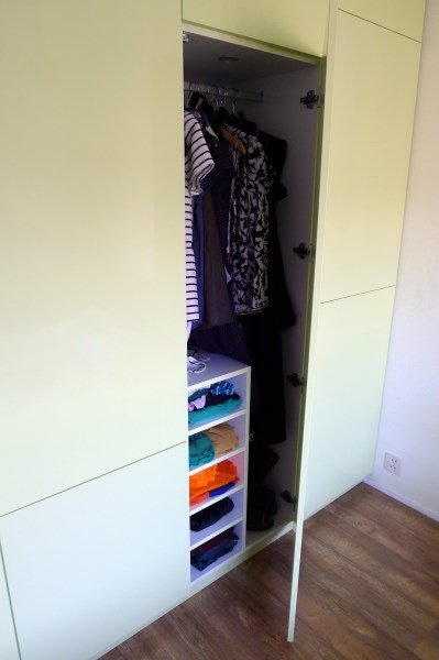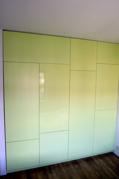 Bijzonderheden: De deuren zijn met matte, zijdeglans en hoogglans verf geschilderd. Dit valt niet echt op, tot je langs de kast loopt. In combinatie met de verspringende fronten heeft dit een speels effect.