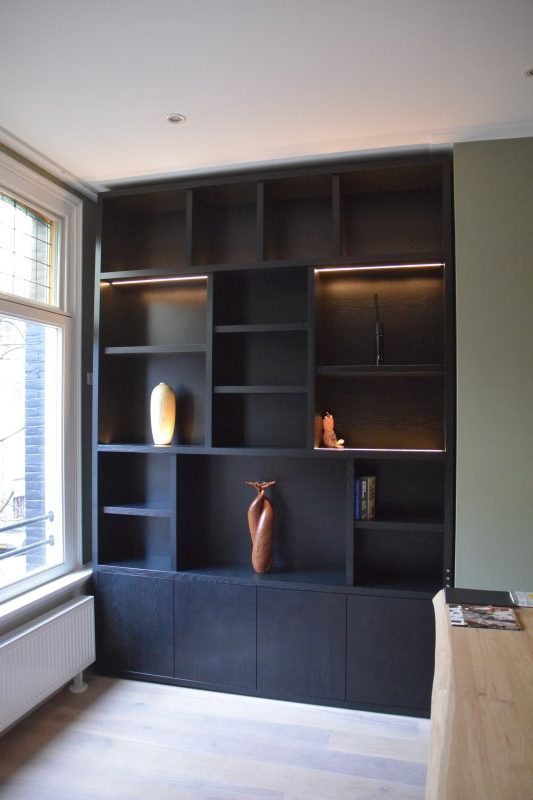 Materiaal: Zwart gebeitst essen-fineer op ecoplex